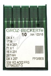 For example, a single commercial needle may be labeled as: DB×1, 1738, 16×257, 17×1, 16×231, 287WH, DB×257